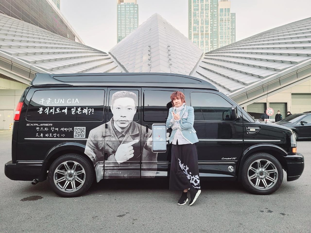 | ▲ 자동차 랩핑후 기념 촬영한 김장훈 [반크 제공] |