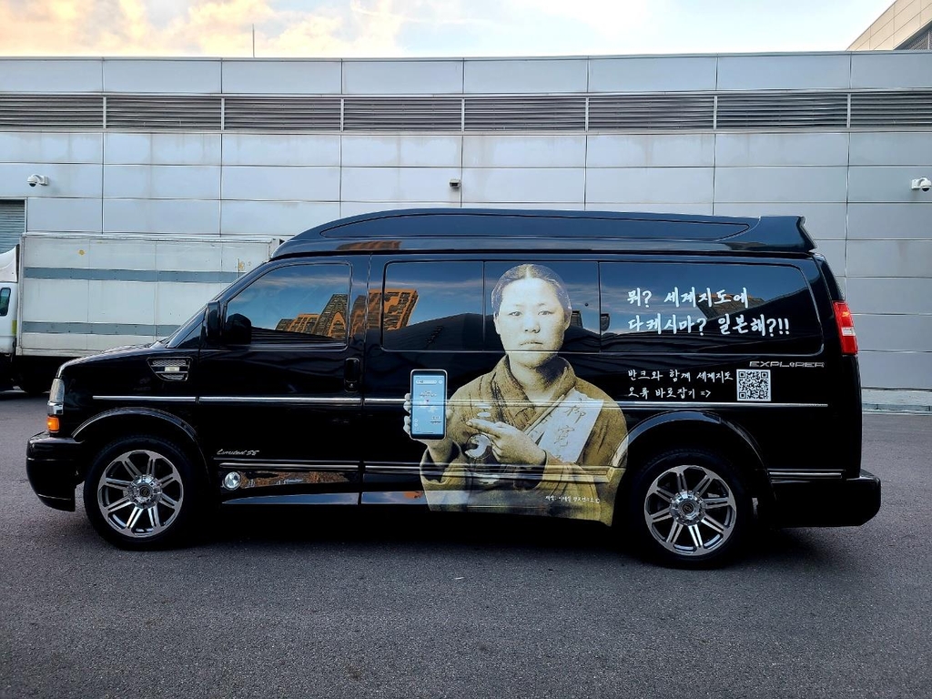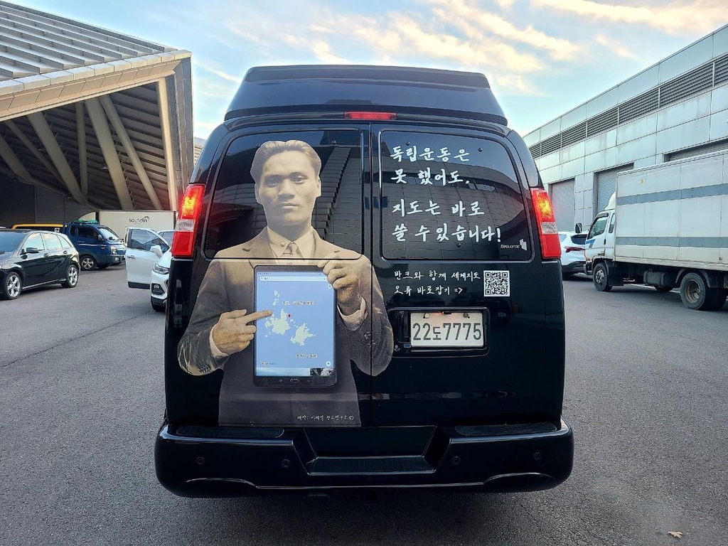| ▲ 김장훈 자동차에 유관순 열사를 활용한 동해 홍보 포스터가 랩핑됐다 [반크 제공] |