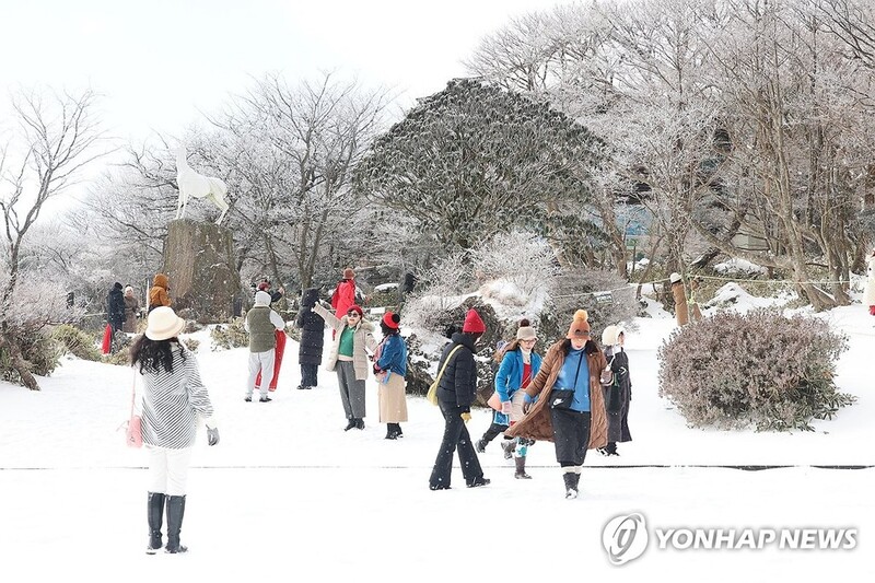| ▲ 겨울왕국 한라산 (제주=연합뉴스) 박지호 기자 = 대설특보가 내려진 18일 오전 제주 한라산 1100고지를 찾은 관광객이 겨울 정취를 만끽하고 있다. 2024.12.18 jihopark@yna.co.kr [연합뉴스 자료사진] |