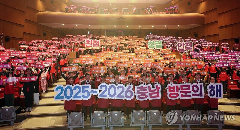 (홍성=연합뉴스) 김소연 기자 = 충남도는 18일 도청 문예회관에서 '2025∼2026 충남 방문의 해' 범도민 다짐대회와 서포터즈 발대식을 열었다.