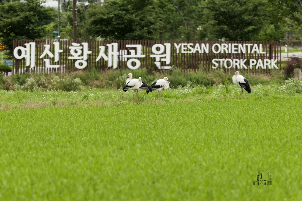 예산황새공원이 있는 광시면 대리 주민들은 논 생물을 섭식하는 황새가 야생에서 스스로 먹이 활동을 할 수 있는 환경을 조성하려고 2009년부터 친환경 농법으로 농사를 짓고 있다.
