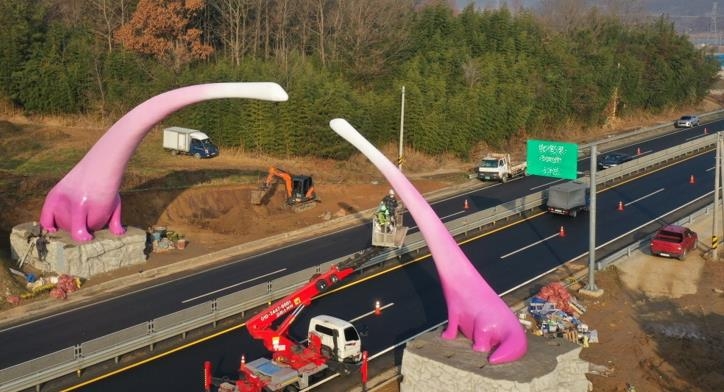 해남 관문에 높이 12m 분홍색 공룡 상징조형물 설치