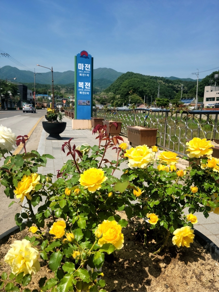 면사무소는 마전교에서 복전2교 사이 구간에 화분 70개를 설치하고 독일 덩굴장미를 심었다.