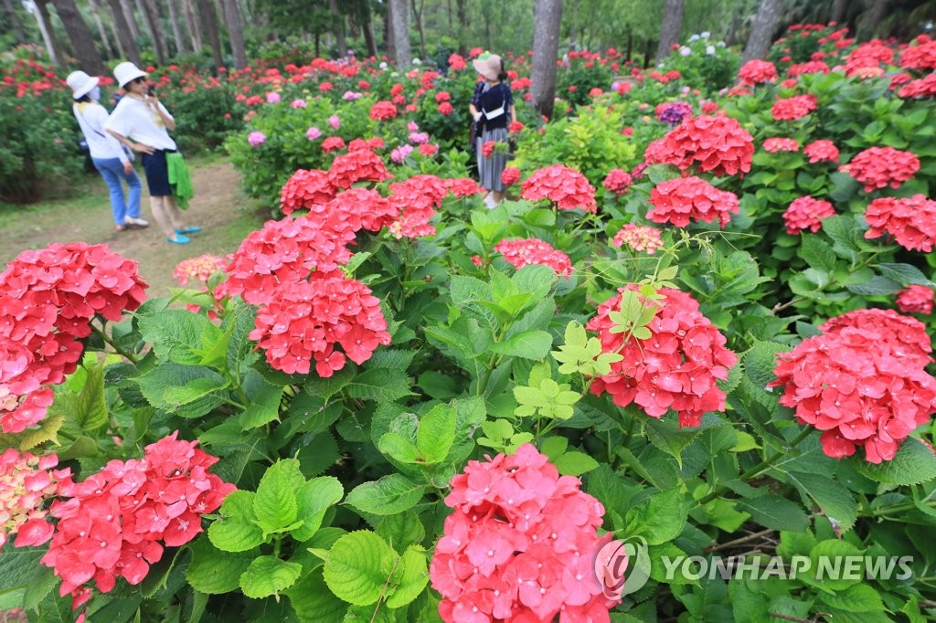 시민들은 화사하게 꽃망울을 터뜨린 수국을 배경으로 기념사진도 찍고 산책도 즐기며 즐거운 시간을 보냈다.