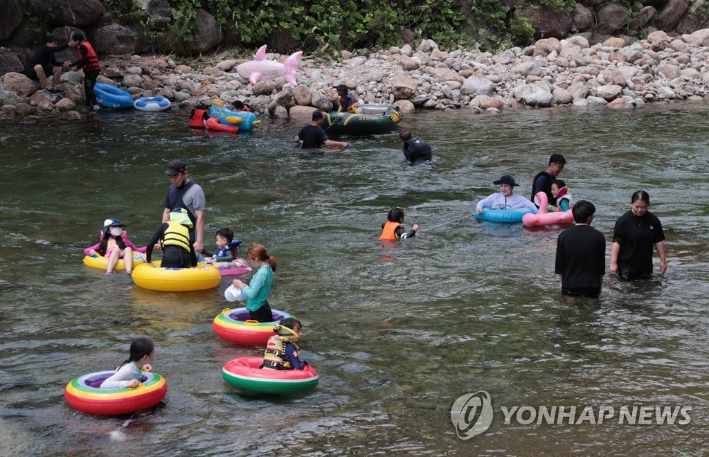 절정의 무더위에 해수욕장 인산인해…나무 그늘 있는 계곡도 북적