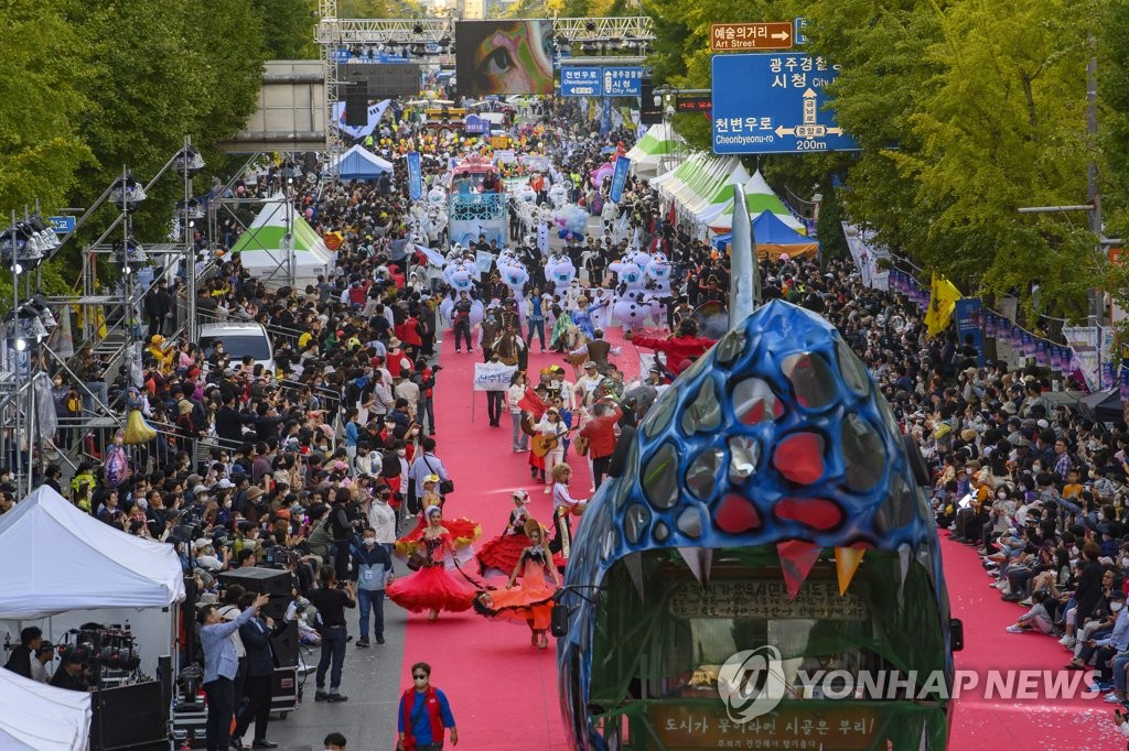 | ▲ 충장축제 퍼레이드 (광주=연합뉴스) 차지욱 기자 = 제19회 추억의 광주충장 월드페스티벌(충장축제) 셋째날인 15일 오후 광주 동구 충장로에서 '잊을 수 없는 영화의 명장면'을 주제로 충장월드퍼레이드가 열리고 있다. 충장축제는 17일까지 닷새간 충장·금남로 일대에서 열린다. 2022.10.15 [공동취재] uk@yna.co.kr |