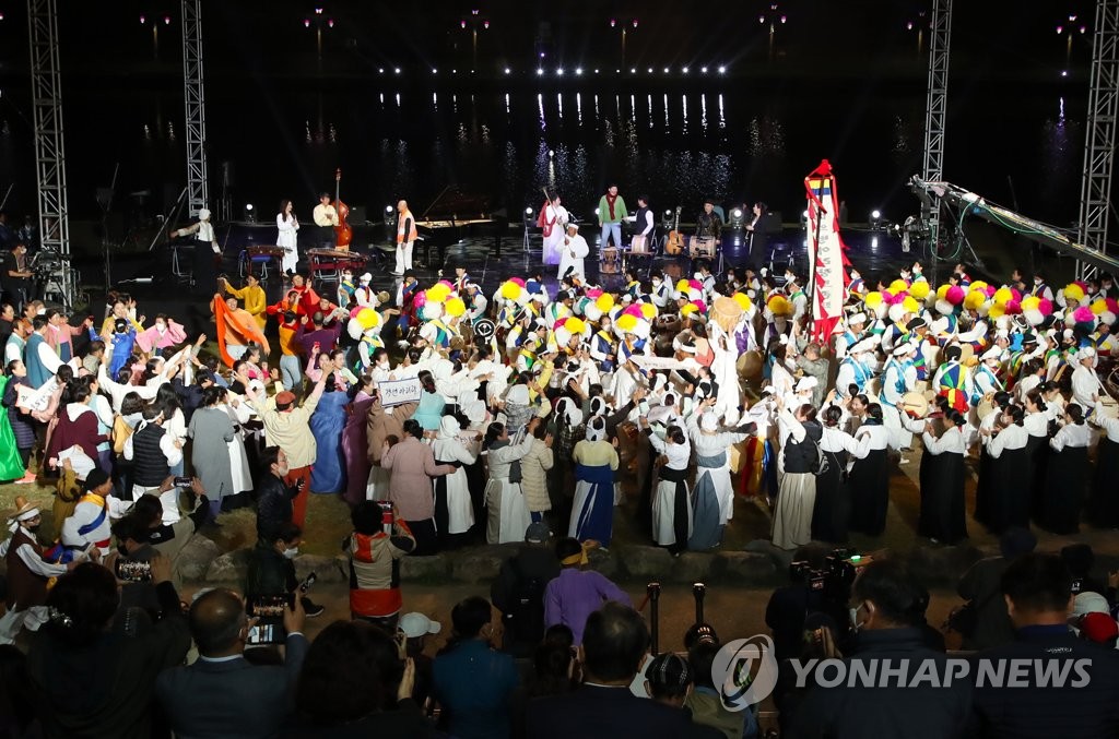 | ▲ 아리랑 대동난장 (밀양=연합뉴스) '천년의 소리 아리랑, 문화로 흐른다' 축제 본공연이 열린 15일 저녁 밀양강변에서 아리랑 대동난장 공연이 열리고 있다. ' 아리랑 유네스코 인류무형문화유산 등재 10주년을 기념해 문화체육관광부, 경남 밀양시, 전남 진도군, 강원도 정선군은 아리랑 유네스코 인류무형문화유산 등재 10주년을 기념해 이 행사를 14∼16일 주최한다. 2022.10.16 [밀양시 제공. 재판매 및 DB 금지] seaman@yna.co.kr |