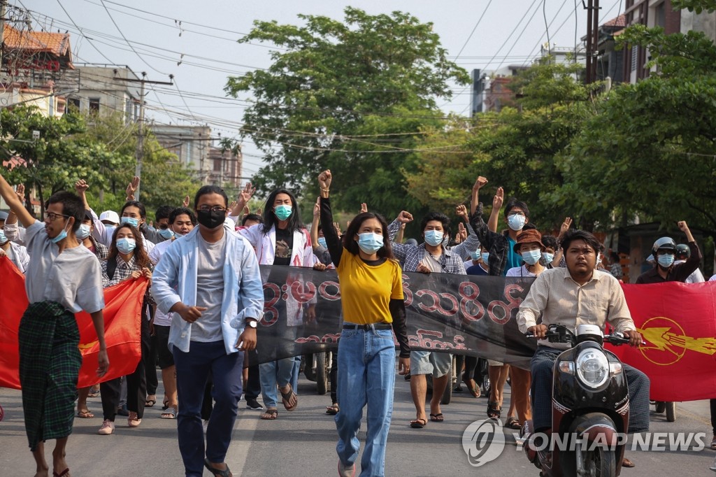 | ▲ 700명 희생에도 그치지 않는 미얀마의 쿠데타 저항 시위 (양곤 EPA=연합뉴스) 미얀마의 지방도시 만달레이에서 14일 군부 쿠데타에 항의하는 시위대가 거리를 행진하고 있다. 미얀마 인권단체 정치범지원협회(AAPP)에 따르면 지난 2월 1일 쿠데타가 발생한 이후 사망자는 최소 700명에 달한다. jsmoon@yna.co.kr |