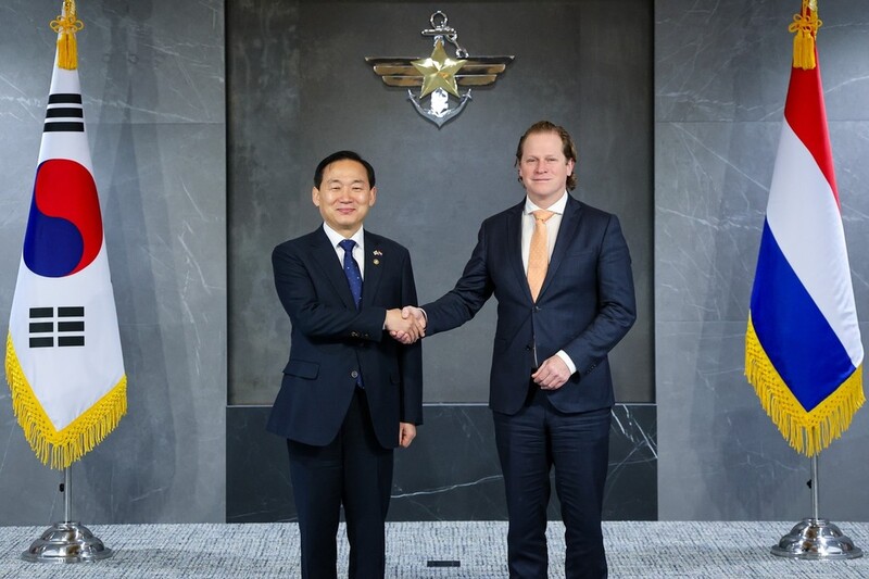 In their talks, Vice Defense Minister Lee Doo-hee and Dutch Minister for Arms Procurement and Personnel Gijs Tuinman underscored the need to strengthen cooperation in an array of areas, including high-level exchange, the arms industry, as well as artificial intelligence, space and cyber, the ministry said.