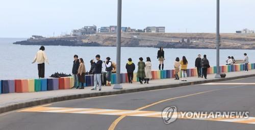 | ▲ 제주 무지개도로 '인기' (제주=연합뉴스) 박지호 기자 = 18일 오전 제주시 도두동 해안도로를 찾은 관광객들이 바다 정취를 즐기고 있다. 2023.2.18