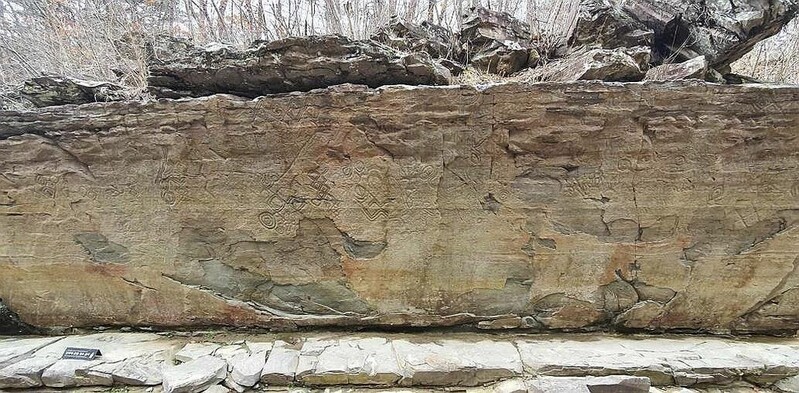 | ▲ 국보 울주 천전리 각석 (서울=연합뉴스) 문화재청은 1973년 국보로 지정된 '울주 천전리 각석'의 명칭을 '울주 천전리 명문(銘文)과 암각화'로 변경했다. 천전리 각석은 태화강의 물줄기인 대곡천 중류 기슭에 각종 도형과 글, 그림이 새겨진 암석으로, 1970년 12월 동국대박물관 학술 조사단에 의해 발견됐다. 사진은 천전리 각석. 2023.12.29 [문화재청 제공. 재판매 및 DB 금지] photo@yna.co.kr |