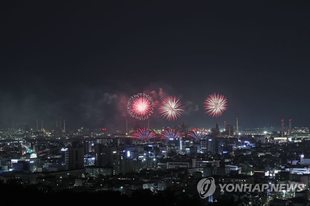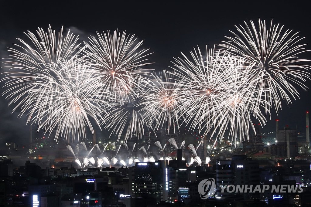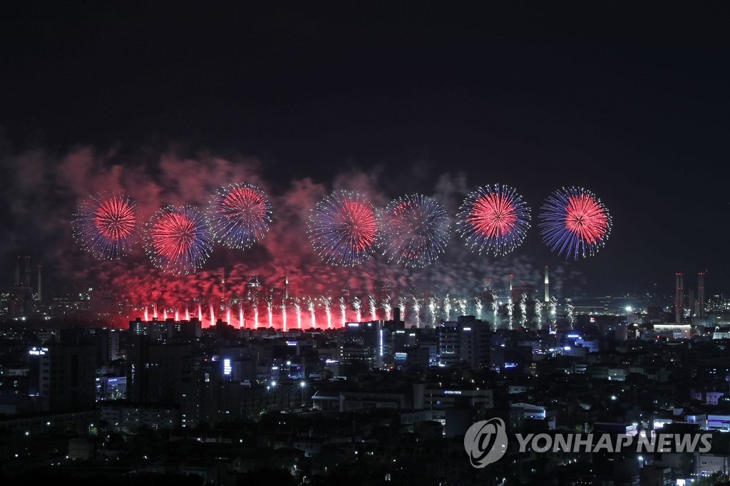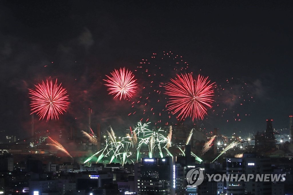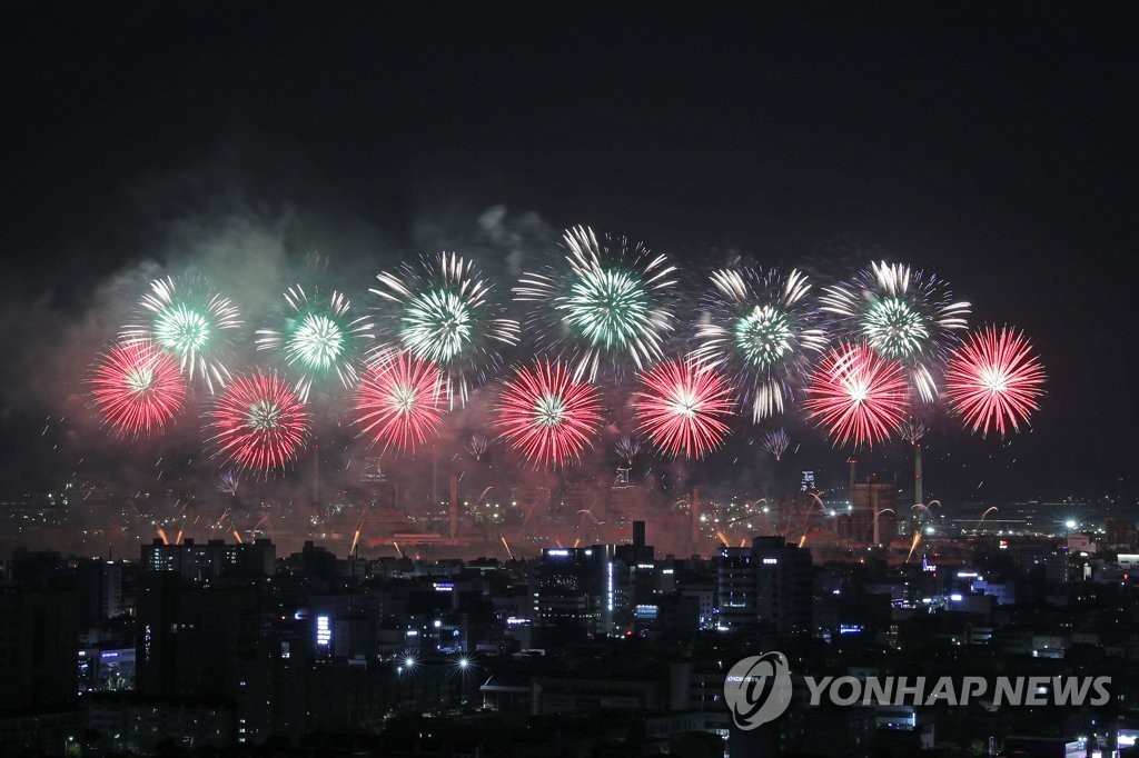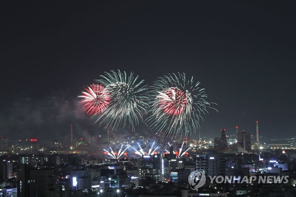 | ▲ 불꽃이 장식한 밤하늘 (포항=연합뉴스) 손대성 기자 = 27일 밤 경북 포항 형산강체육공원 일원에서 열린 포항국제불빛축제에서 국제불꽃쇼에 참가한 각국 팀이 쏘아 올린 불꽃이 포항 하늘을 수놓고 있다. 2023.5.27 sds123@yna.co.kr |