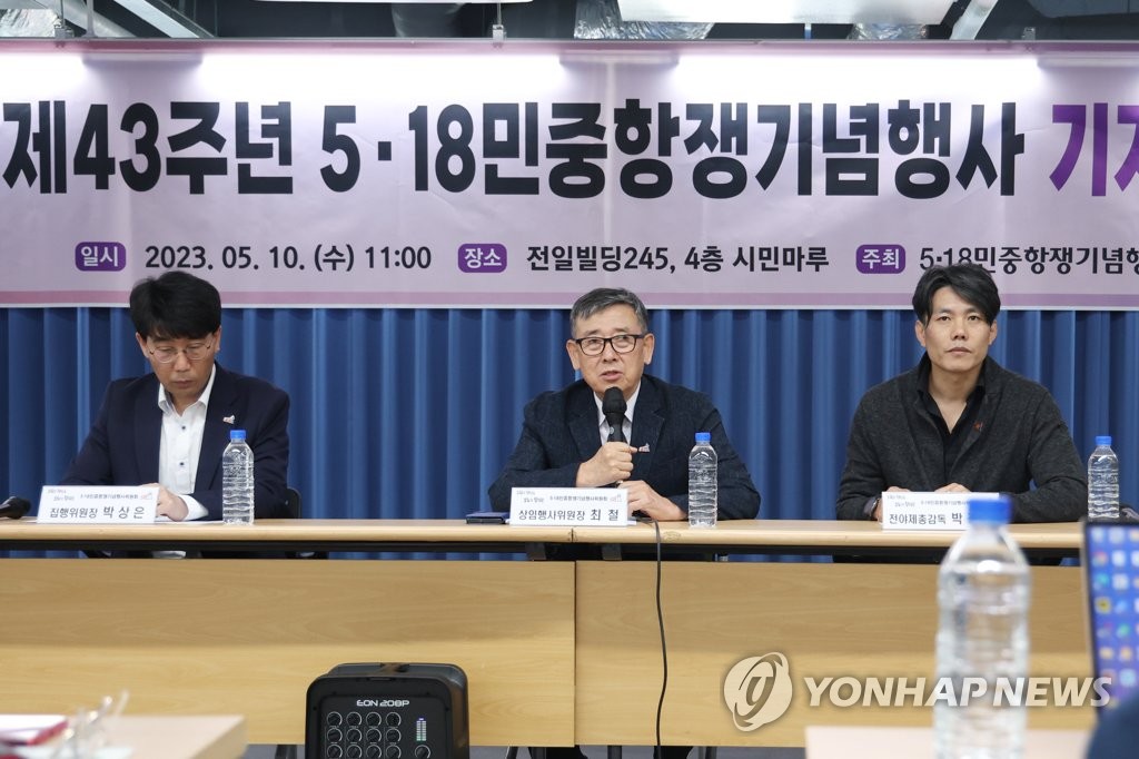 | ▲ 43주년 5·18 기념행사 준비 (광주=연합뉴스) 천정인 기자 = 10일 오전 광주 동구 전일빌딩245 4층 시민마루에서 열린 제43주년 5·18민중항쟁기념행사 기자간담회에서 최철 상임행사위원장이 발언하고 있다. 2023.5.10 iny@yna.co.kr |