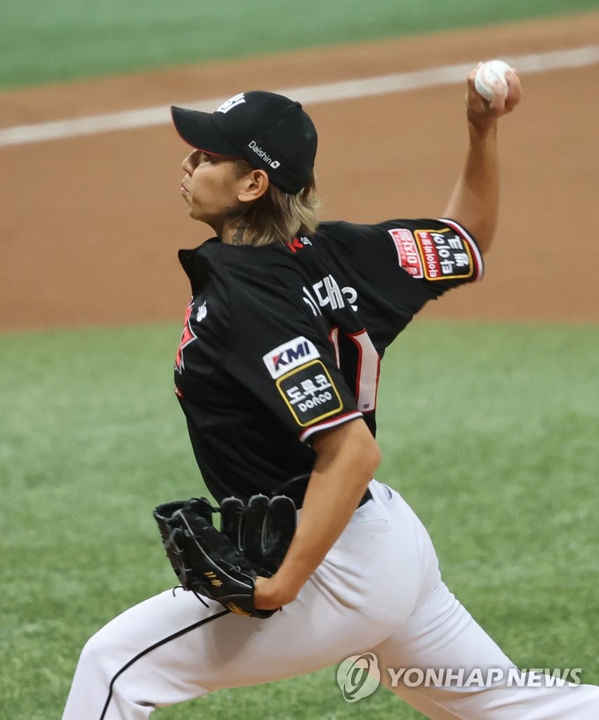 | ▲  Rhee Dae-eun of the KT Wiz pitches against the Kiwoom Heroes in the bottom of the sixth inning of a Korea Baseball Organization regular season game at Gocheok Sky Dome in Seoul on Aug. 10, 2021. (Yonhap) |