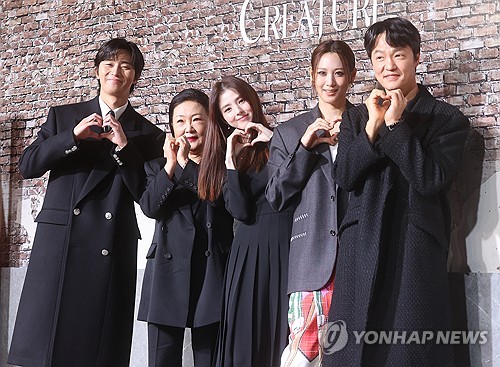 | ▲ Cast members of Netflix's upcoming series "Gyeongseong Creature" pose for photos during a media event in Seoul on Dec. 19, 2023. (Yonhap) |