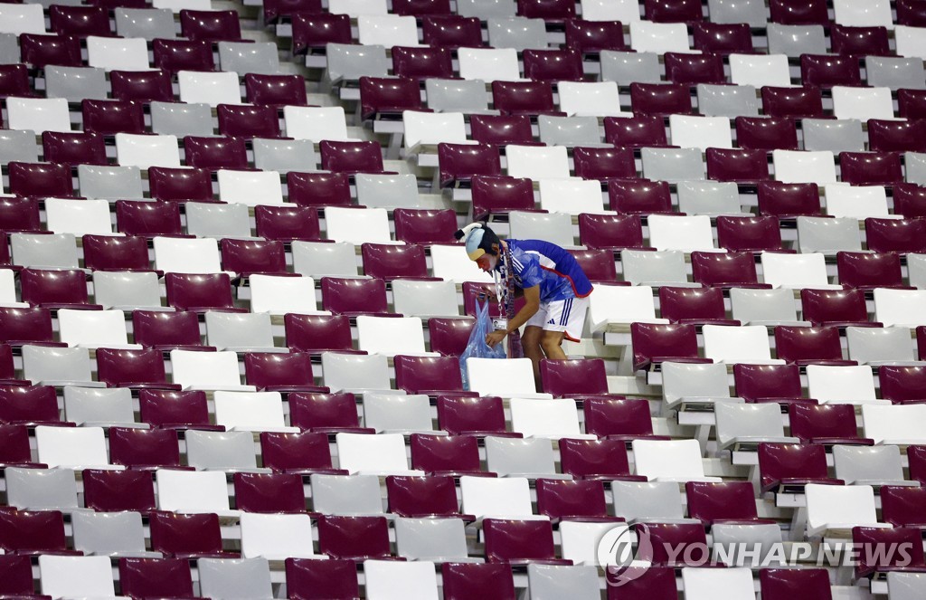 (서울=연합뉴스) 이의진 기자 = 독일에 이어 스페인마저 꺾고 카타르 월드컵 16강에 진출한 일본 관중들은 환희 속에서도 차분히 경기장을 청소했다.