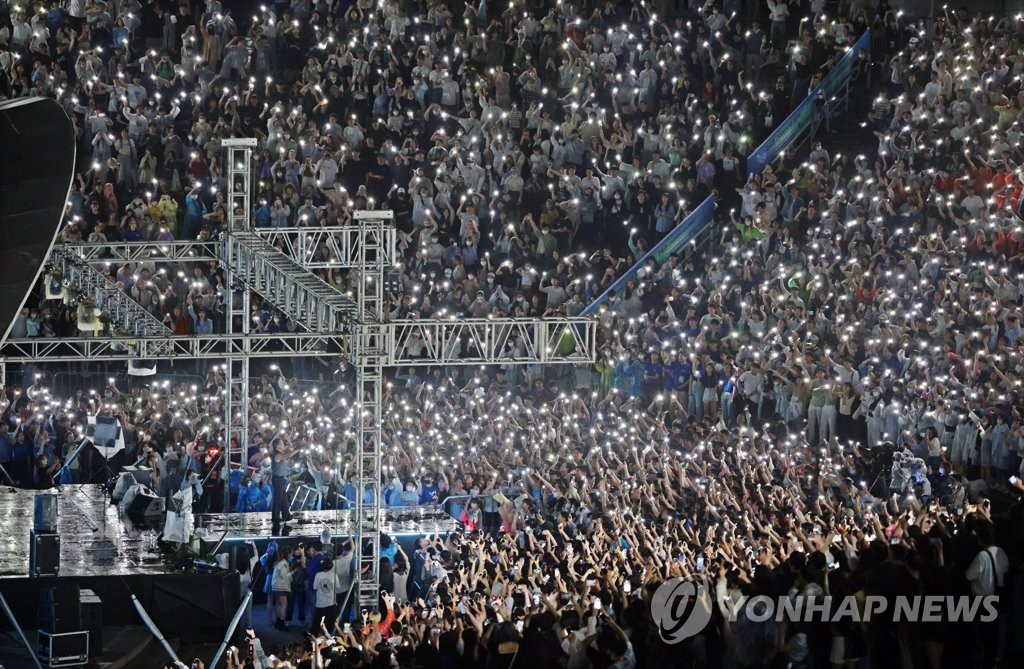 (서울=연합뉴스) 김영신 기자 = 방역당국이 가수 싸이의 콘서트 '흠뻑쇼' 등 물이 사용되는 대규모 야외 행사에 대해 "물에 젖은 마스크가 세균 번식 등의 위험이 있다"고 설명했다.