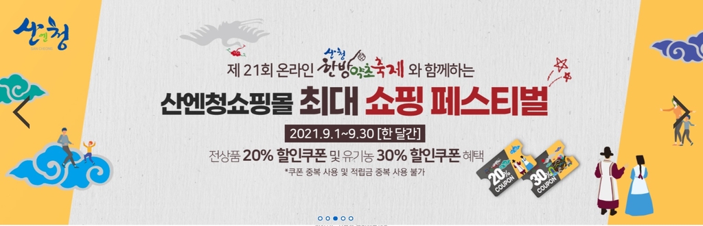 산청군 직영 온라인몰인 '산엔청쇼핑몰'에서는 축제 기간 구매고객 할인행사를 진행한다.