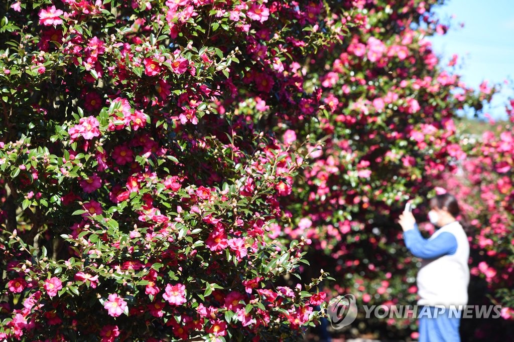 | ▲ 동백꽃 만발한 제주 (서귀포=연합뉴스) 박지호 기자 = 28일 오후 제주 서귀포시 남원읍 휴애리자연생활공원에 동백꽃이 활짝 피어 입장객들의 이목을 끌고 있다. 2021.11.28 jihopark@yna.co.kr |