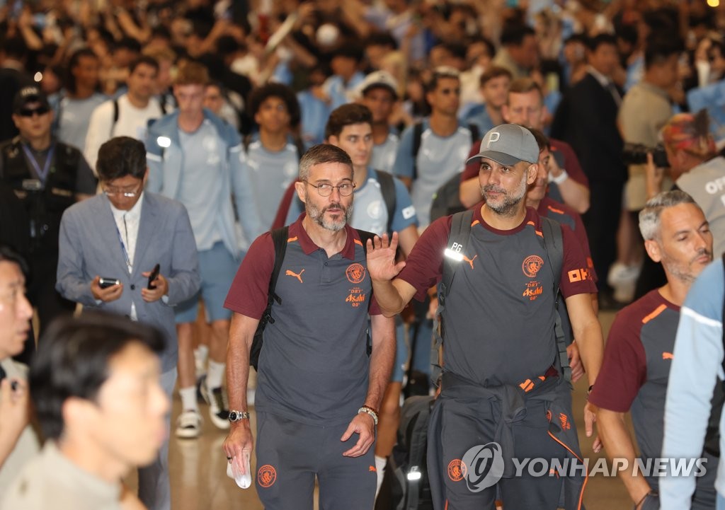 | ▲ 한국 들어온 페프 과르디올라 (영종도=연합뉴스) 김성민 기자 = 아틀레티코 마드리드와 쿠팡플레이 친선전을 앞둔 영국 프리미어 리그 맨체스터 시티 페프 과르디올라 감독이 27일 오후 인천국제공항 제1여객터미널에서 입국장을 나서고 있다. 2023.7.27 ksm7976@yna.co.kr |