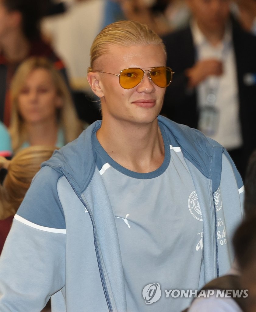 | ▲ 한국 입국하는 엘링 홀란 (영종도=연합뉴스) 김성민 기자 = 아틀레티코 마드리드와 쿠팡플레이 친선전을 앞둔 잉글랜드 프리미어리그 맨체스터 시티의 엘링 홀란이 27일 오후 인천국제공항 제1여객터미널에서 입국장을 나서고 있다. 2023.7.27 ksm7976@yna.co.kr |