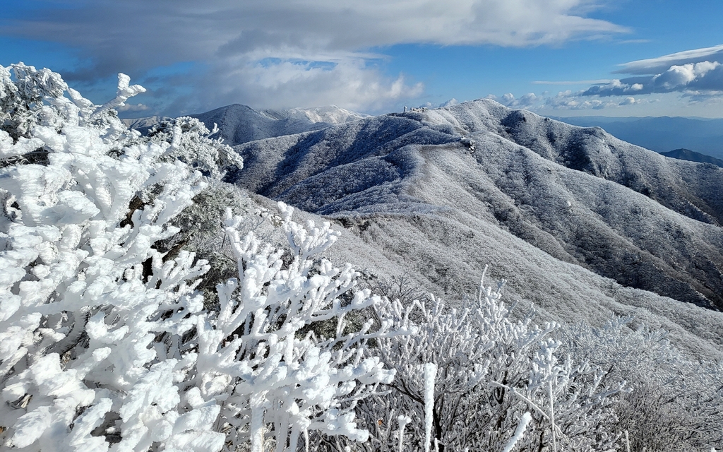 전날 비가 내리면서 대기 중에 습기가 높아진 가운데 기온이 영하로 뚝 떨어지면서 상고대가 활짝 피어났다.