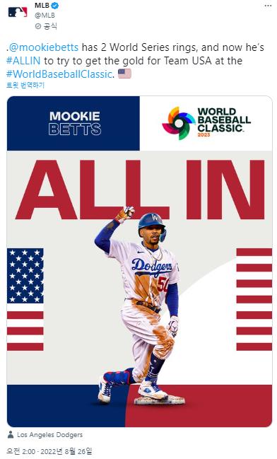 | ▲ 무키 베츠의 WBC 참가를 소개한 MLB 트위터 [MLB 트위터 계정 캡처. 재판매 및 DB 금지] |