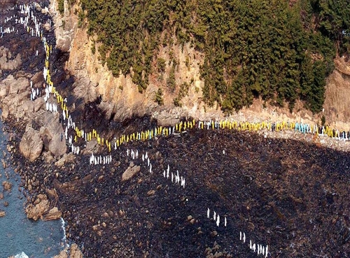 | ▲ This photo provided by the Cultural Heritage Administration on Nov. 26, 2022, shows volunteers working to recover from a massive oil spill off Taean in 2007. (PHOTO NOT FOR SALE) (Yonhap) |
