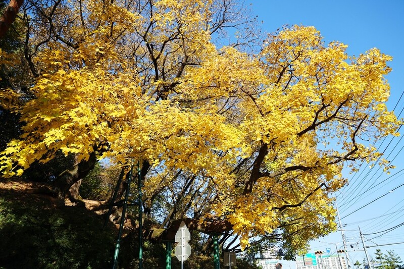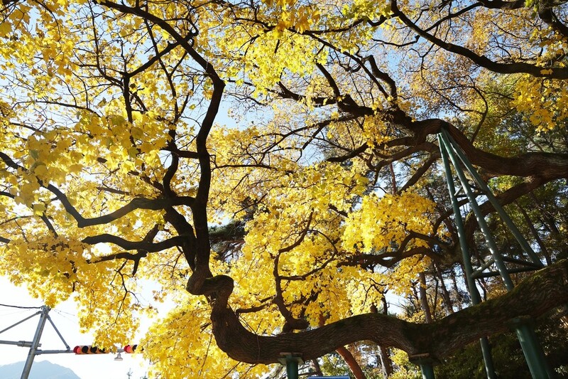 [사진톡톡] 샛노란 잎 무성한 천연기념물 '창원 신방리 음나무군'