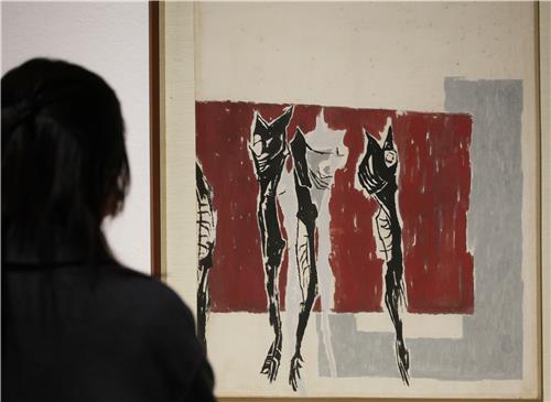 | ▲ 박래현의 '정물' 감상하는 관람객 [촬영 나보배] |