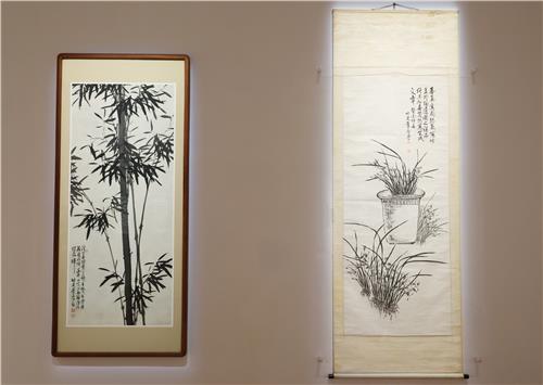 | ▲ 나란히 걸린 이응노의 '대죽'(왼쪽)과 '분난' [촬영 나보배] |