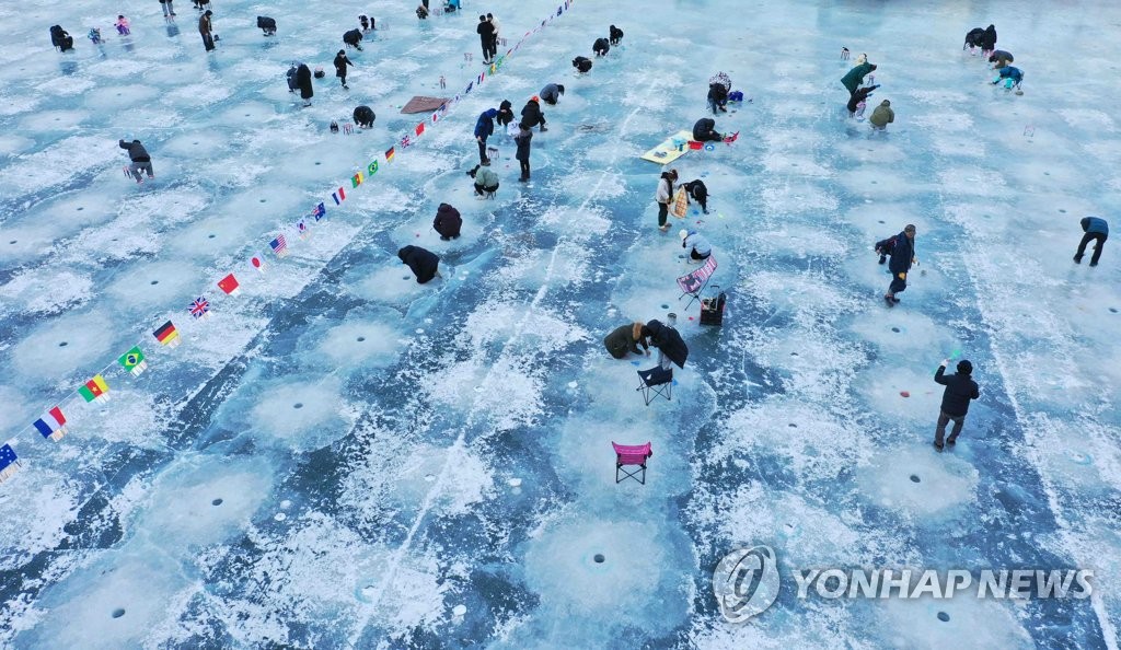 | ▲ '겨울 손맛' (안동=연합뉴스) 김현태 기자 = 지난달 31일 오후 경북 안동시 암산유원지에서 열리고 있는 암산얼음축제에서 가는 겨울이 아쉬운 시민들이 평일임에도 현장을 찾아 빙어낚시를 즐기고 있다. 2023.1.31 mtkht@yna.co.kr |
