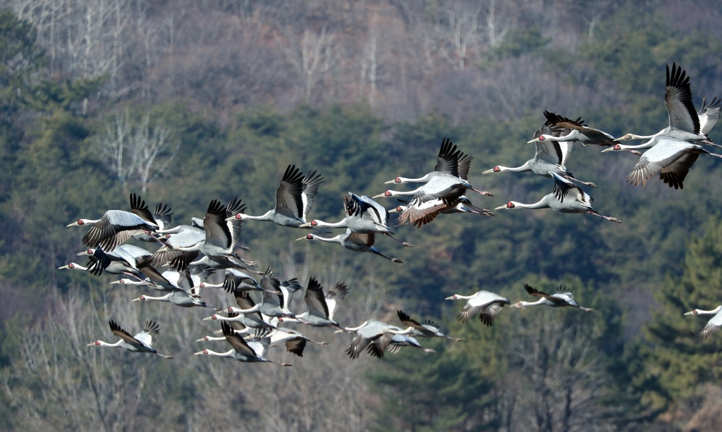 | ▲ 재두루미 비상 (의령=연합뉴스) 지난 4일 경남 의령군 정곡면 부자마을 일대에서 재두루미가 비상하고 있다. 이곳은 삼성그룹 창업주 호암 이병철 회장 고향 마을이다. 2022.1.5 [경남 의령군 제공. 재판매 및 DB 금지] |