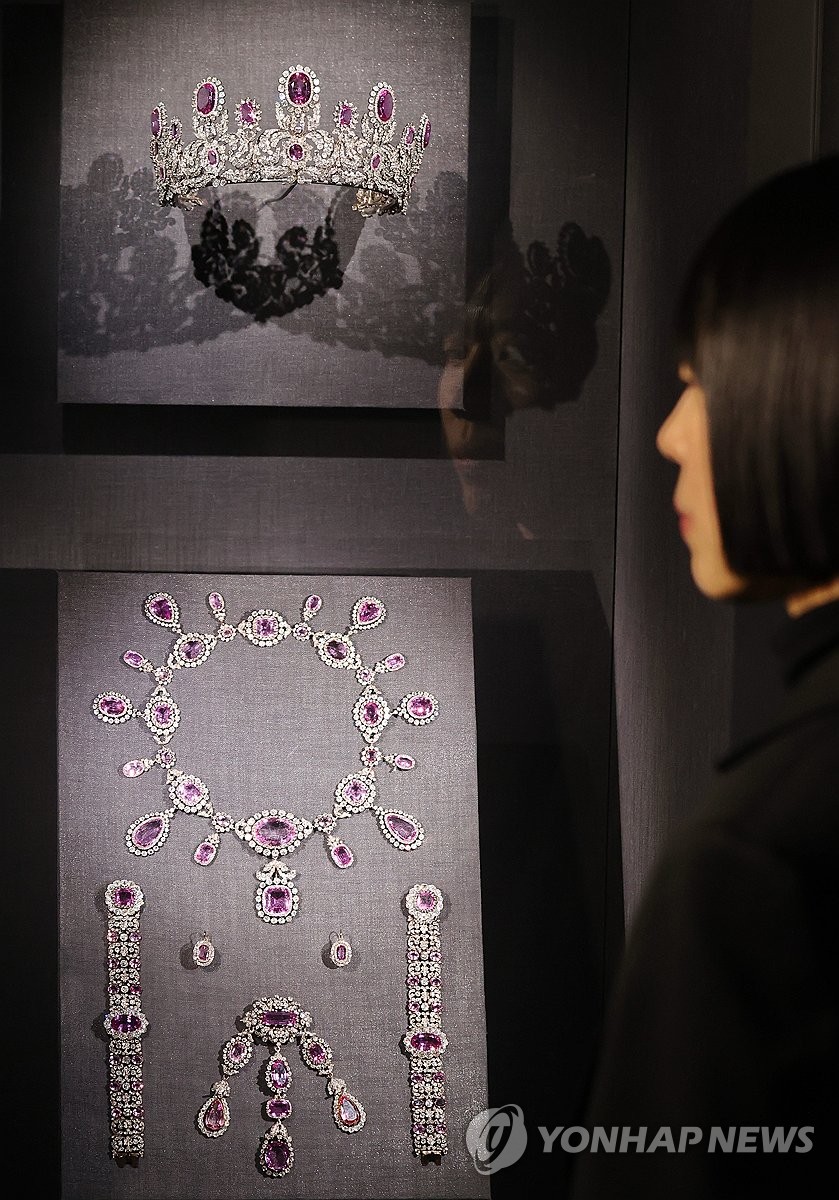 | ▲ 핑크 토파즈로 만든 뷔르템베르크 왕가의 파뤼르 (서울=연합뉴스) 이재희 기자 = 5일 오전 서울 송파구 롯데뮤지엄에서 열린 '고혹의 보석, 매혹의 시간' 전시에 핑크 토파즈로 만든 독일 뷔르템베르크 왕가의 파뤼르가 전시돼 있다. 이 세트는 티아라, 목걸이, 귀걸이, 브로치, 팔찌로 구성됐다. 주얼리 컬렉터 아리카와 가즈미 컬렉션 208점이 전시된 이번 전시는 다음 해 3월 16일까지 열린다. 2024.12.5 scape@yna.co.kr |