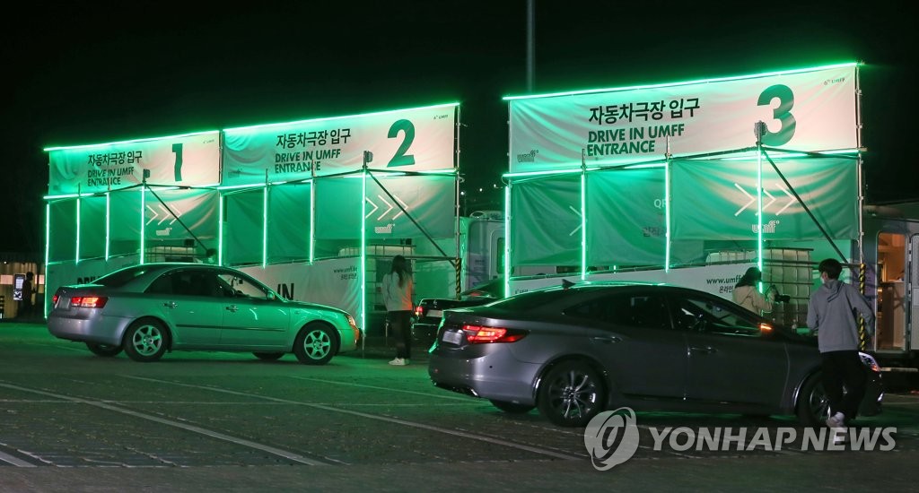 | ▲ 제6회 울주세계산악영화제 개막…자동차 극장서 상영 (울산=연합뉴스) 김용태 기자 = 2일 오후 울산시 울주군 영남알프스 복합웰컴센터에 설치된 '제6회 울주세계산악영화제' 자동차 극장으로 차량이 입장하고 있다. 이날 개막한 제6회 울주세계산악영화제는 11일까지 열흘간 복합웰컴센터를 중심으로 울주군 언양읍과 범서읍 등지에서 열린다. 2021.4.2 yongtae@yna.co.kr |