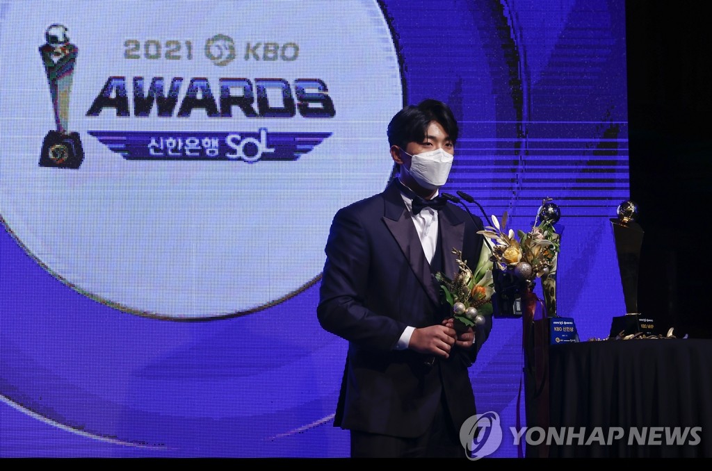 Choi Jun-yong, 20, pitched in his second season in 2021 but still qualified for the top freshman award after throwing just 29 2/3 innings in 2020 -- one out shy of the minimum for Rookie of the Year candidates.