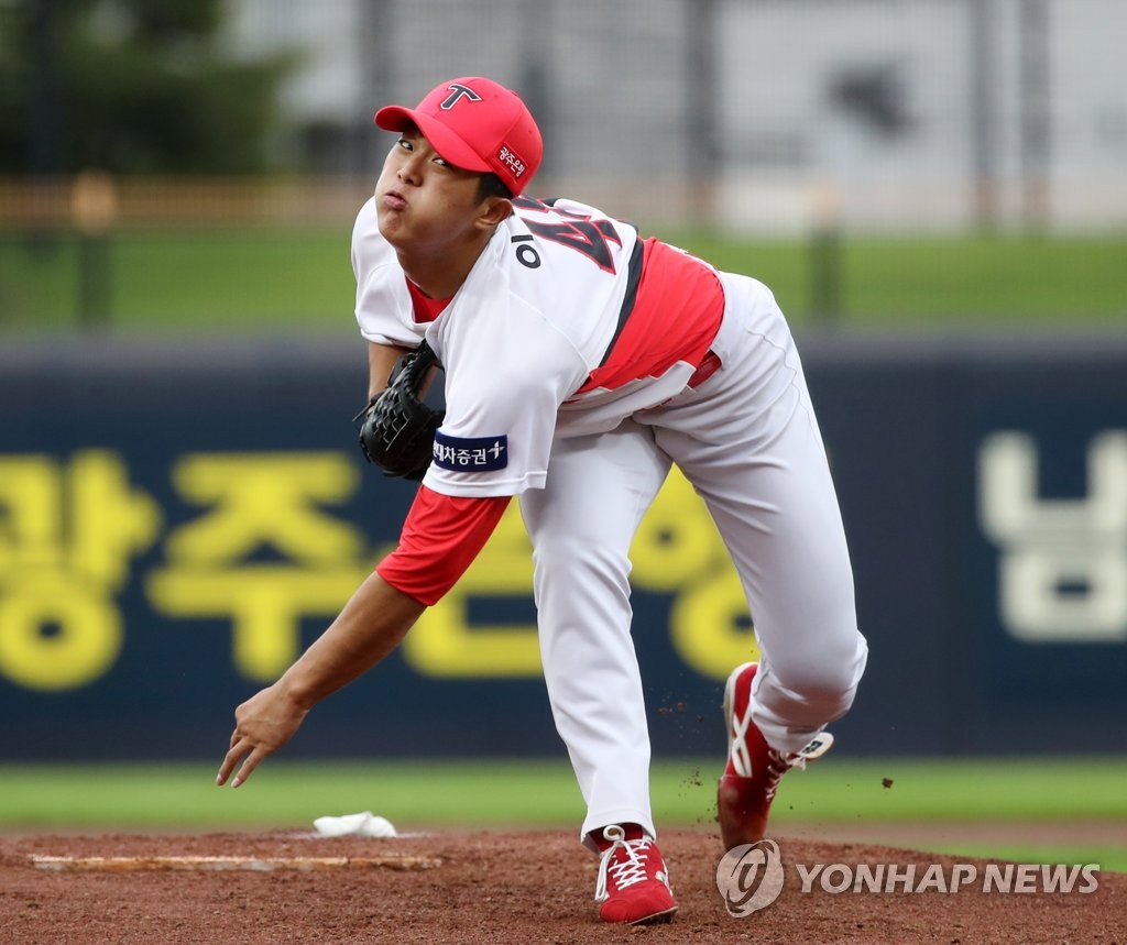 | ▲ In this file photo from Sept. 12, 2021, Lee Eui-lee of the Kia Tigers pitches against the NC Dinos in the top of the first inning of a Korea Baseball Organization regular season game at Gwangju-Kia Champions Field in Gwangju, some 330 kilometers south of Seoul. (Yonhap) |