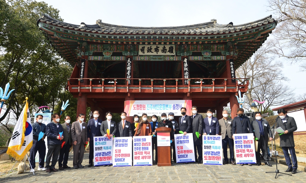 (진주=연합뉴스) 지성호 기자 = '경남도청 환원 진주시민 운동본부'가 3일 공식 출범했다.