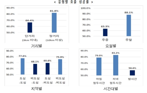| ▲ 서울시 카카오택시 실태조사 결과…유형별 호출 성공률 [서울시 제공. 재판매 및 DB 금지] |