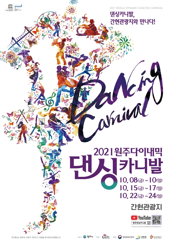 | ▲ 원주 다이내믹댄싱카니발 11월 이후로 연기 (원주=연합뉴스) 8일부터 24일까지 간현관광지 일원에서 개최 예정이었던 '2021 원주 다이내믹 댄싱카니발'을 엄중한 방역 상황을 고려해 11월 이후로 연기됐다. 사진은 행사 포스터. 2021.10.1 |