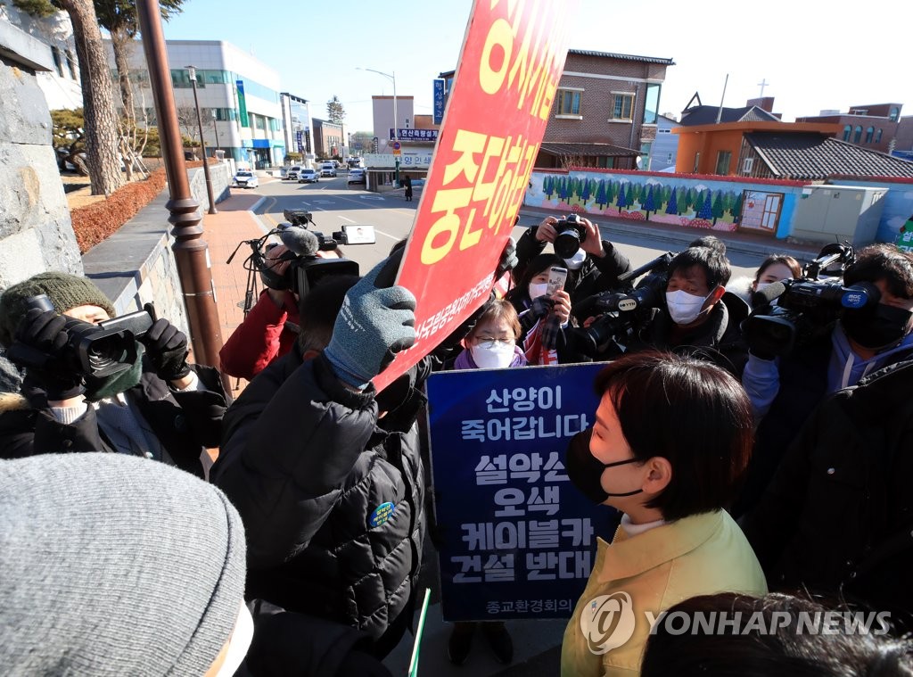 이들 단체는 간담회장인 양양군청을 방문한 전 위원장에게 항의하고 케이블카 반대 의사를 전달했다.