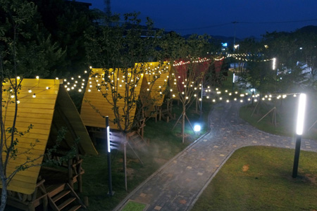 오두막 15개와 쿨링포그(안개 분무기) 12개, 길이 25m의 집라인 등을 갖춘 공원은 오는 27일 정식 개장한다.