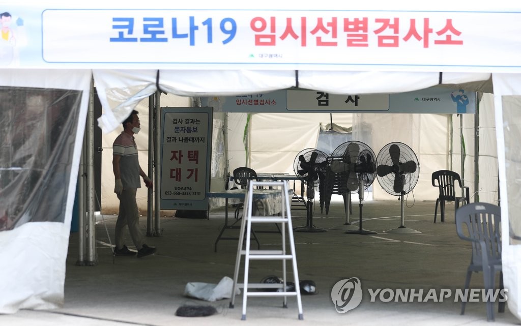 | ▲ A makeshift COVID-19 testing station is being set up at a park in Daegu, 237 kilometers southeast of Seoul, on July 29, 2022, as South Korea experiences a spike in infection numbers. (Yonhap) |