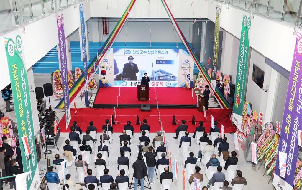(신안=연합뉴스) 조근영 기자 = 전남 신안군은 천사대교 인근 압해읍 송공항에서 신안군수협 송공 다기능 위판장 준공식을 열었다고 21일 밝혔다.