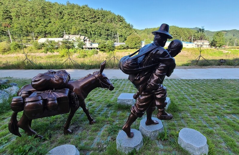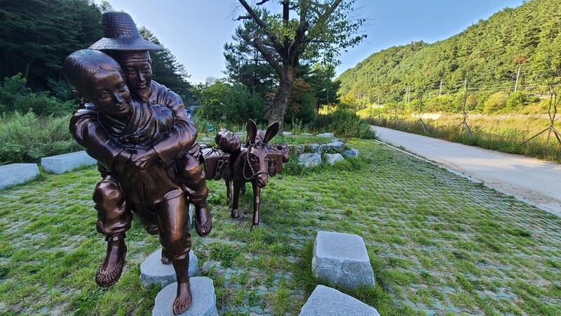 | ▲ 동이에게 업힌 허생원 조형물 [촬영 이재현] |