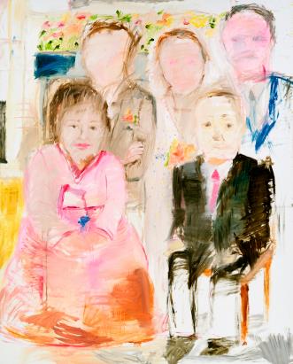 고경호의 '아들-포지셔닝' 연작은 돌 사진, 나들이 사진, 졸업 사진 등 가족 앨범에서 흔히 볼 수 있는 장면들로 이뤄졌다. 빠르고 거센 붓질과 지워진 인물 형상이 가족 안의 규범에서 억눌린 심리 상태를 보여준다.