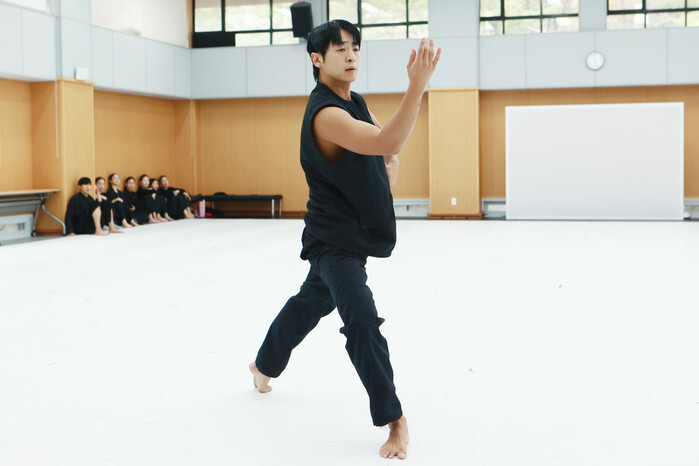 South Korean actor Jo Yong-jin performs during a publicity event for the National Dance Company of Korea's new work "Book of the Dead" in Seoul on April 3, 2024. (Yonhap)