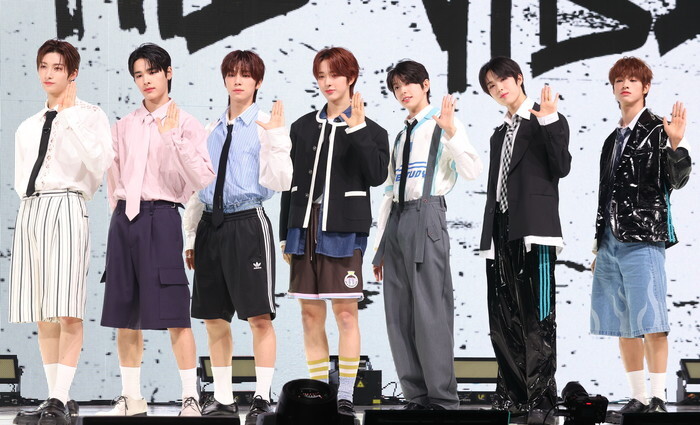 South Korean boy group NEXZ poses for a photo during a showcase in Seoul on May 20, 2024, to promote the release of the group's first single album "Live The Vibe." (Yonhap)