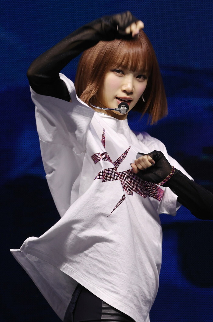 Kim Chae-won, a member of South Korean girl group Le Sserafim, performs during a showcase in Seoul on Aug. 29, 2024, to promote the release of the group's fourth mini album "Crazy." (Yonhap)