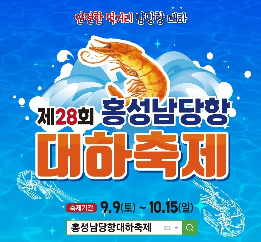 (홍성=연합뉴스) 김소연 기자 = 서해안 가을 대표 먹거리인 대하를 맛볼 수 있는 제28회 남당항 대하 축제가 다음 달 9일부터 10월 15일까지 충남 홍성군 남당항 일원에서 펼쳐진다.